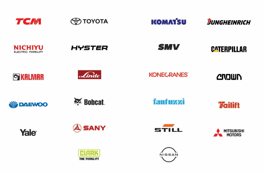 Including Toyota, Komatsu, Jungheinrich, TCM, Hyster, Mitsubishi, Yale, Caterpillar, Clark, Kalmar, and more.